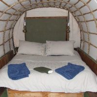 Each Oxwagon has the same layout, but some are smaller and some are larger. The smallest Oxwagon is the “Felix Lategan” (sleeps 2), the largest is the “Bert Joubert” (sleeps 6). We allocate accommodation according to the practical principle of Best-Fit. In total, all the Oxwagons can sleep 26 people.